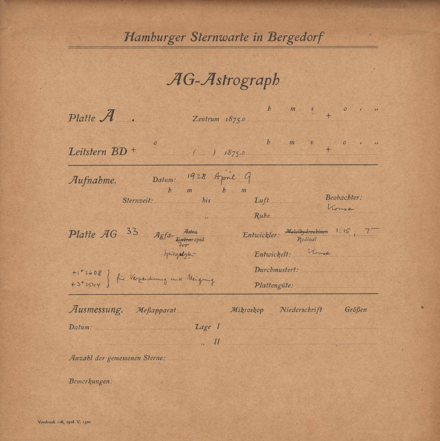 The material in this archive can be used for scientific purposes free of charge. Any other usage requires the written permission of the director of Hamburger Sternwarte.