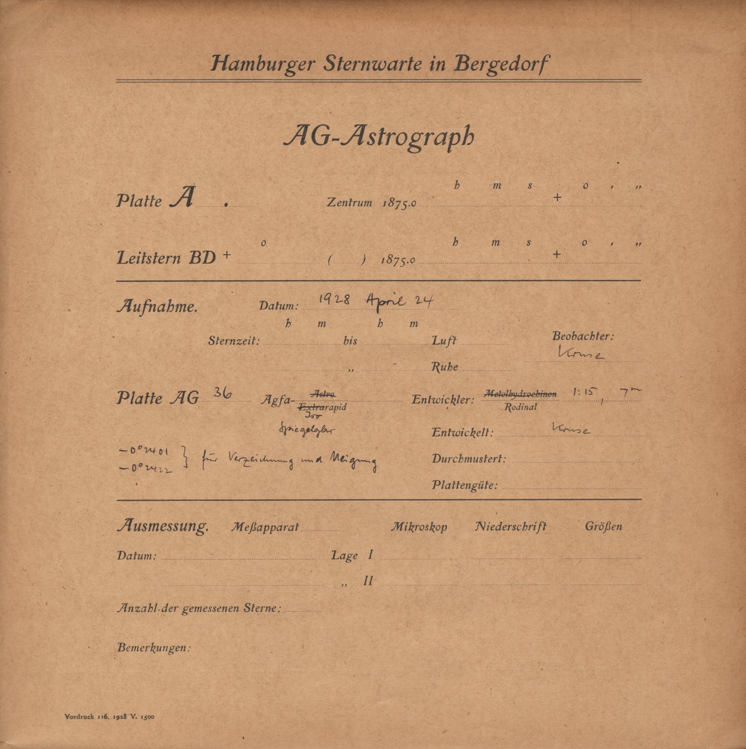 The material in this archive can be used for scientific purposes free of charge. Any other usage requires the written permission of the director of Hamburger Sternwarte.