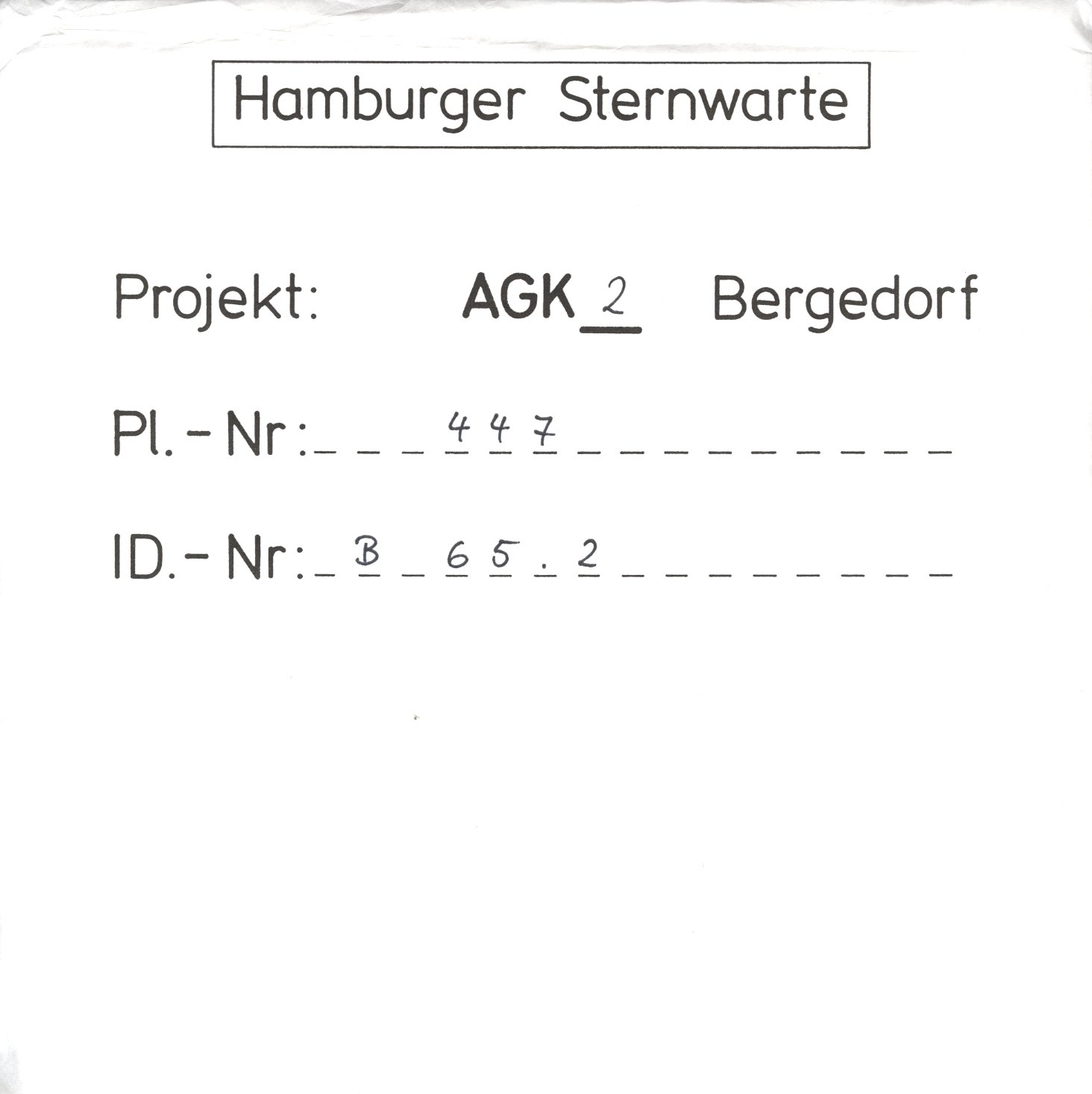 AGK-Teleskop: AG00447 -- B65.02 -- 00:40:33+65:25:12
