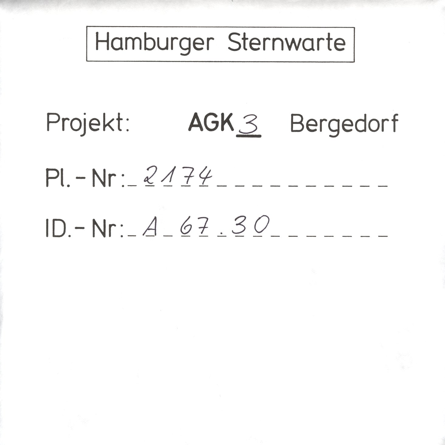 AGK-Teleskop: AG02174 -- Feld A67.30 -- 21:46:46+67:53.0