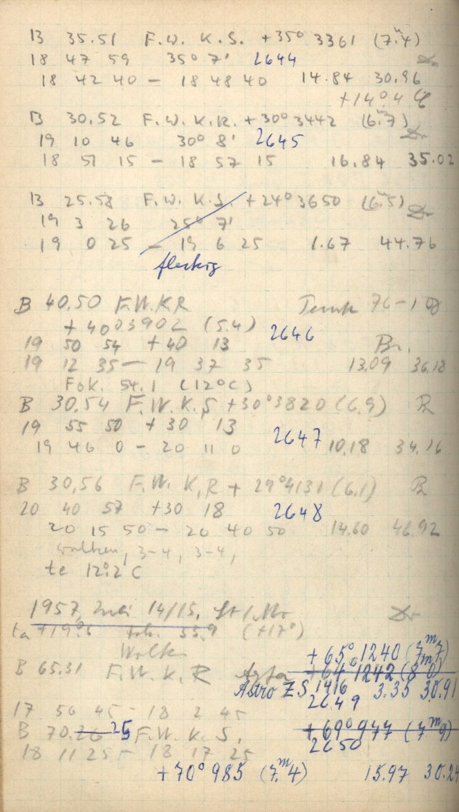 Zum Datum gehörende Seiten des Beobachtungsbuches