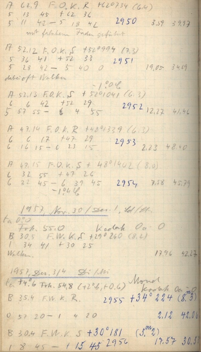 Zum Datum gehörende Seiten des Beobachtungsbuches