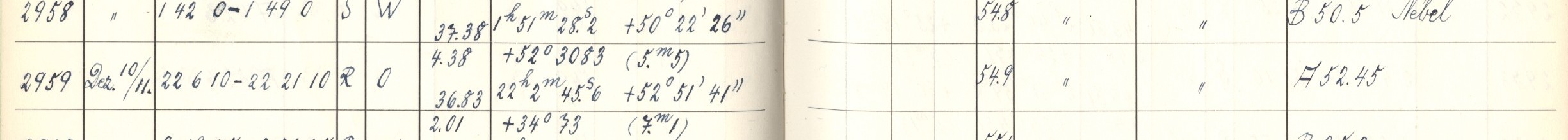 Zum Datum gehörende Seiten des Beobachtungsbuches