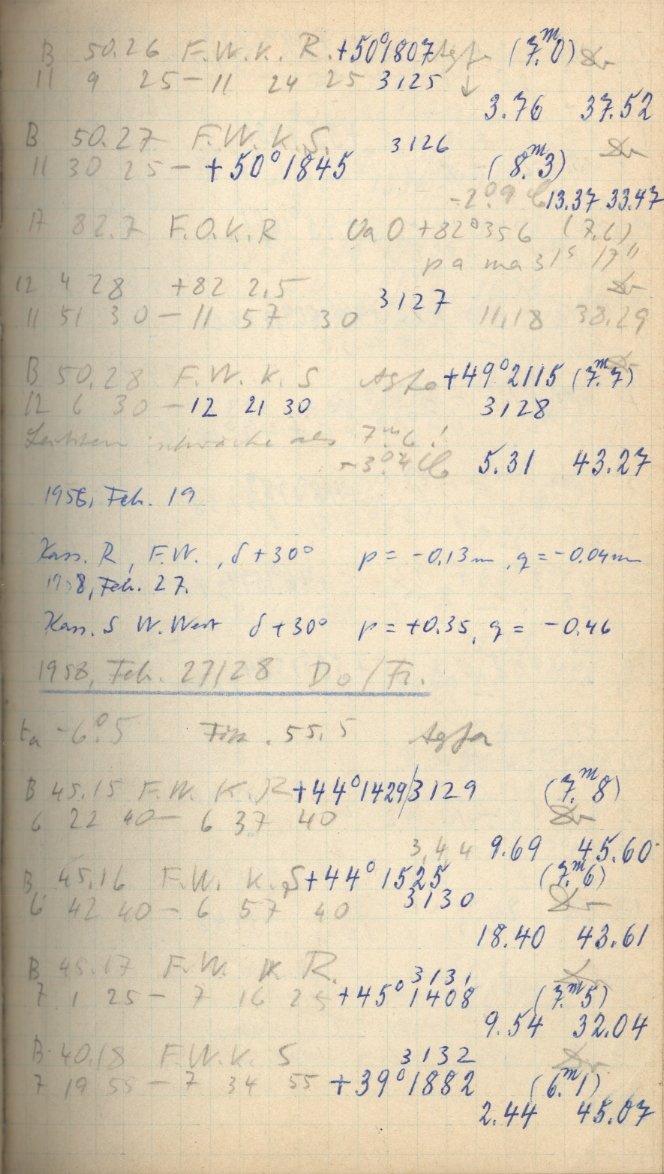 Zum Datum gehörende Seiten des Beobachtungsbuches