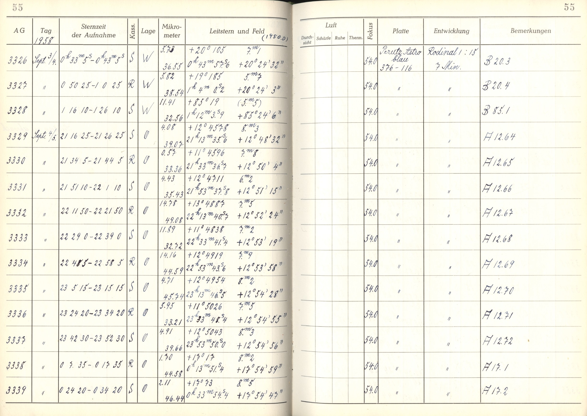 Zum Datum gehörende Seiten des Beobachtungsbuches