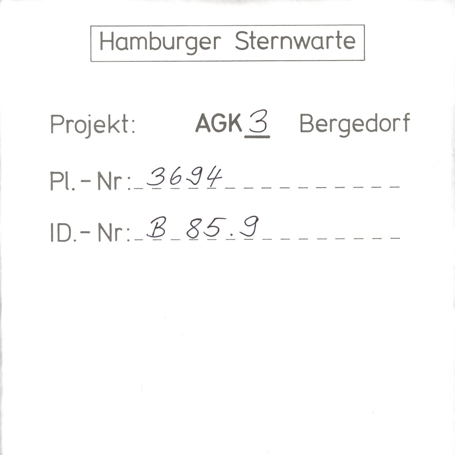 AGK-Teleskop: AG03694 -- Feld B85.9 -- 16:44:53+84:52.0