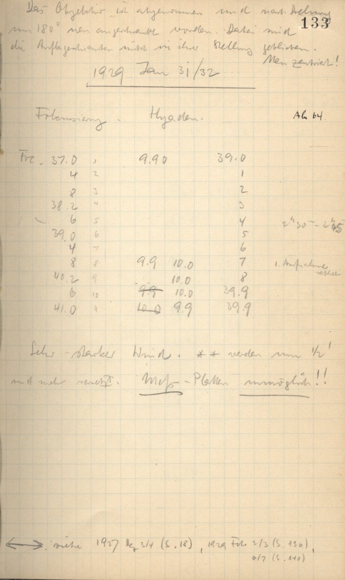 Zum Datum gehörende Seiten des Beobachtungsbuches