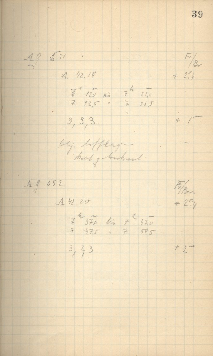 Zum Datum gehörende Seiten des Beobachtungsbuches