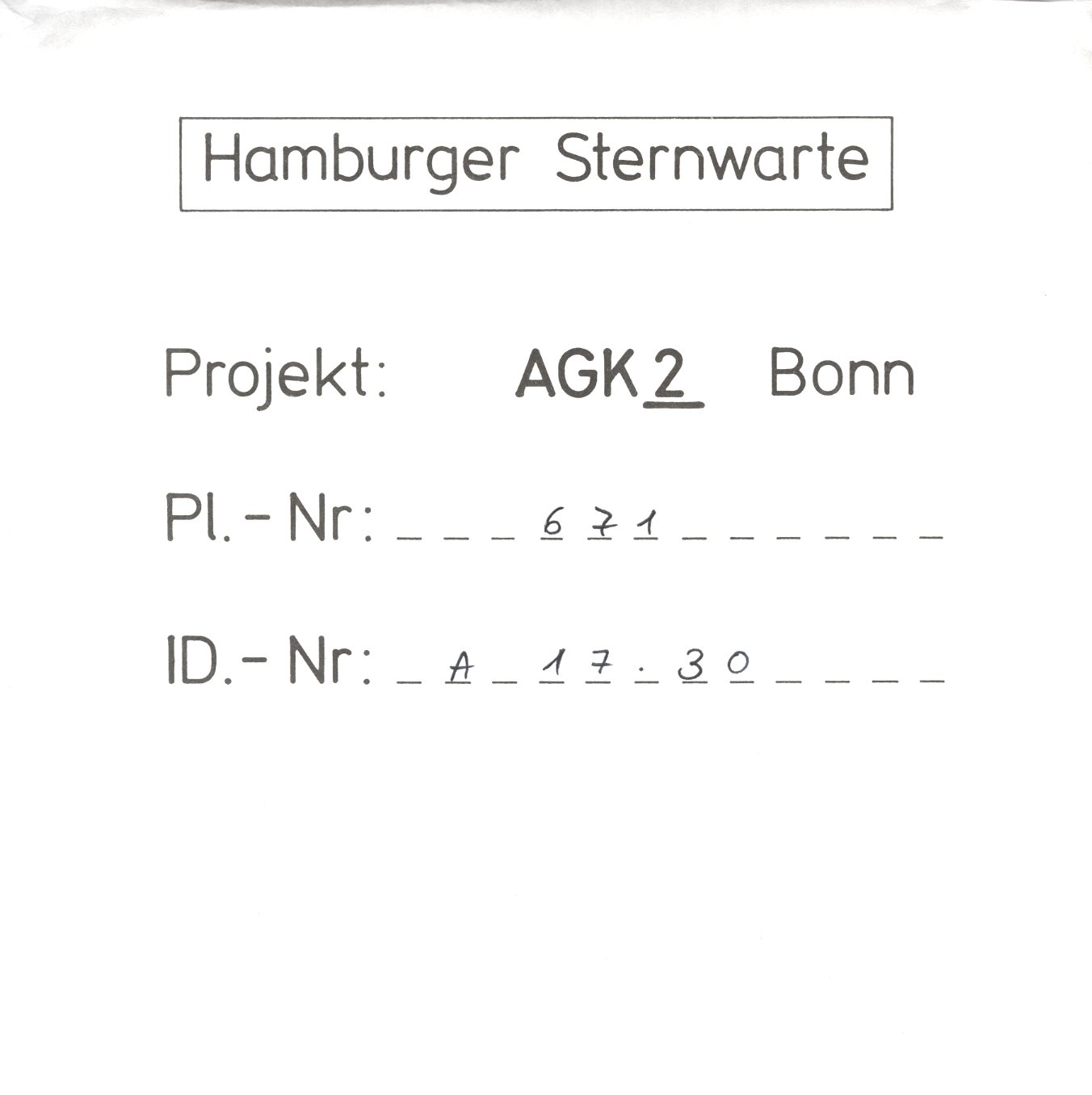 AGK-Teleskop: AGB0671 -- A17.30 -- 09:54:06+17:08:35