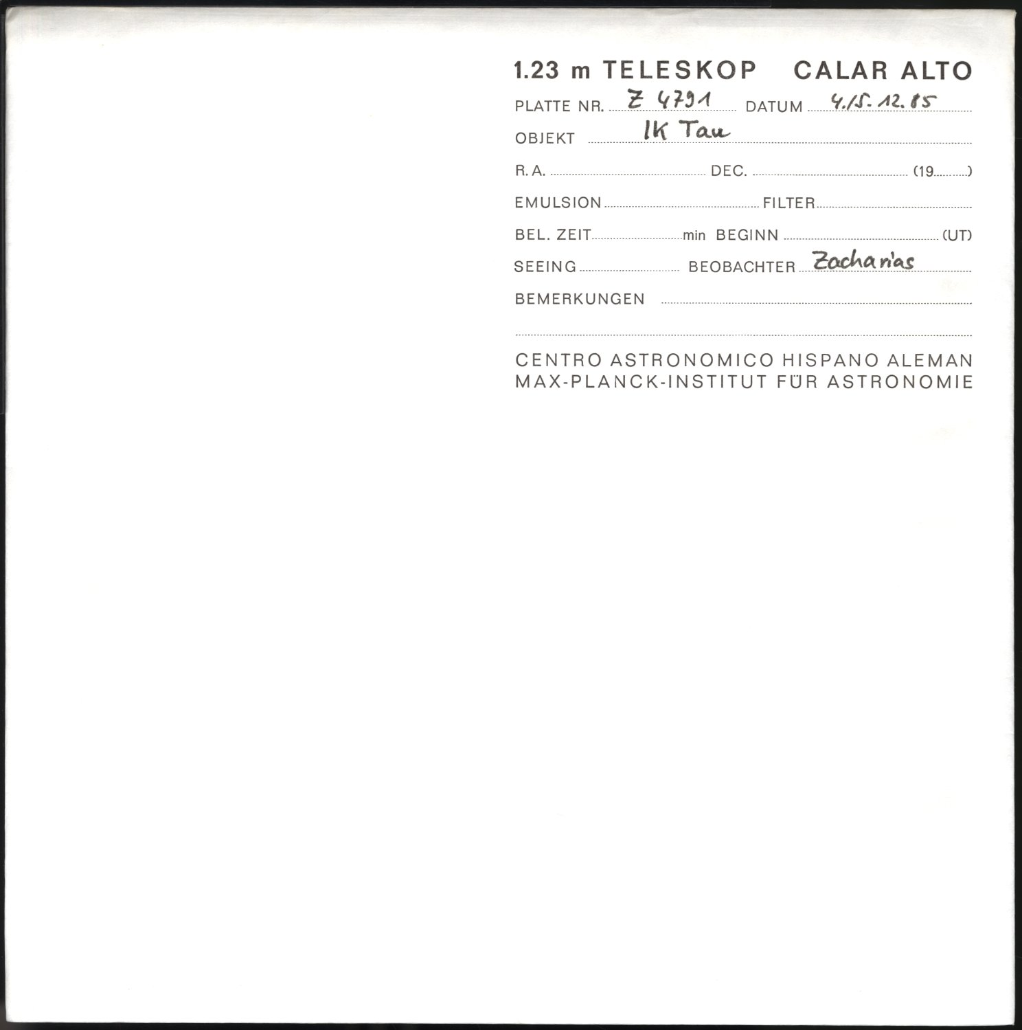 Calar Alto 1.23m + 2.2m Spiegelteleskop: CA04791z -- IK Tau --