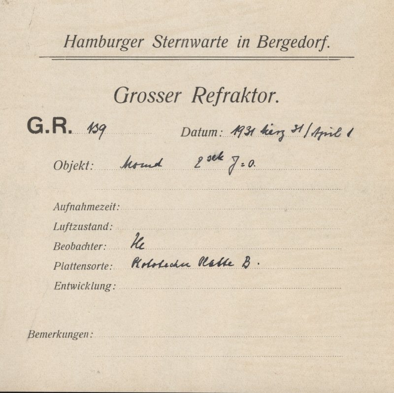 The material in this archive can be used for scientific purposes free of charge. Any other usage requires the written permission of the director of Hamburger Sternwarte.