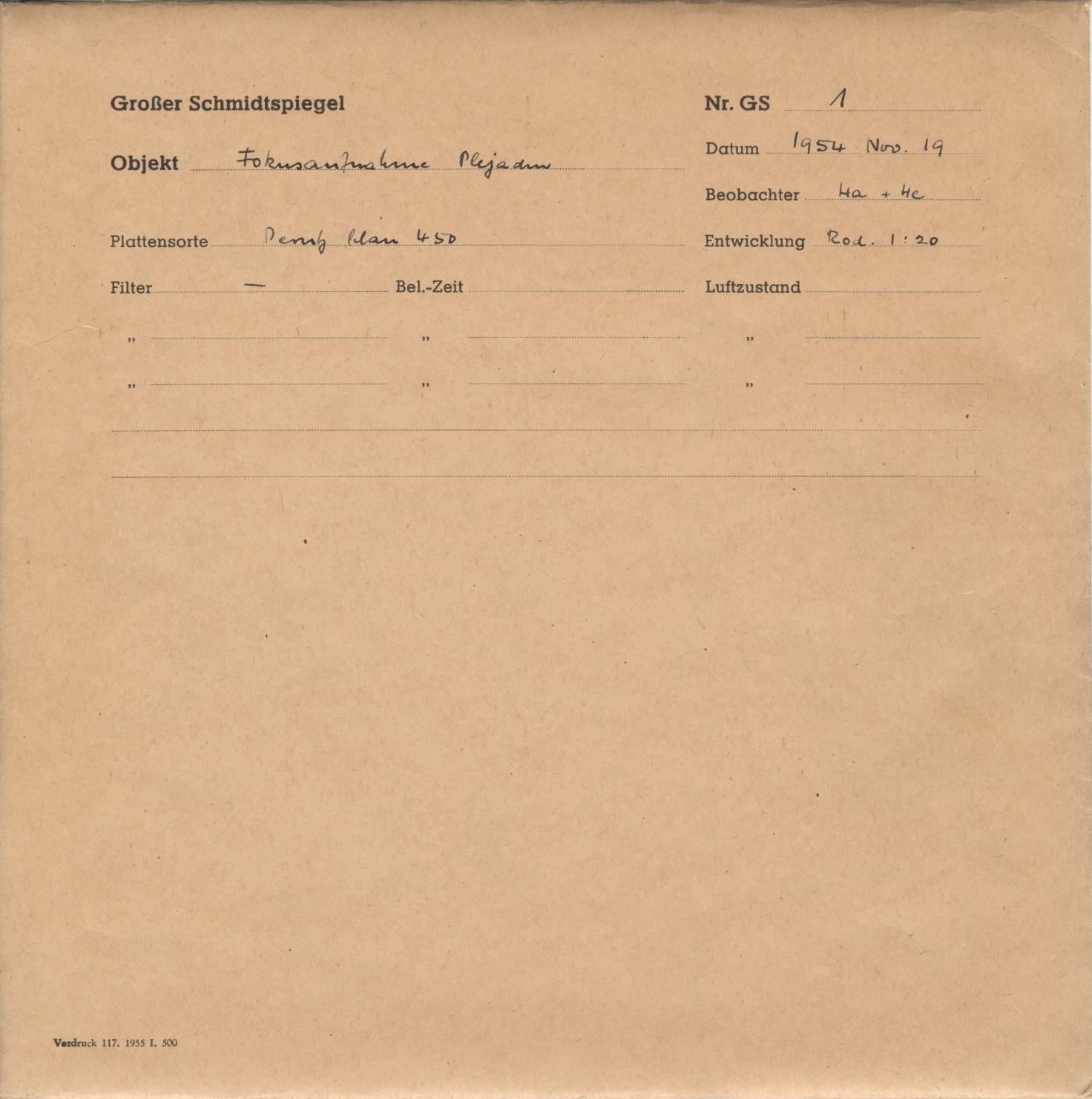 Großer-Schmidt-Spiegel: GS00001 -- Plejaden --