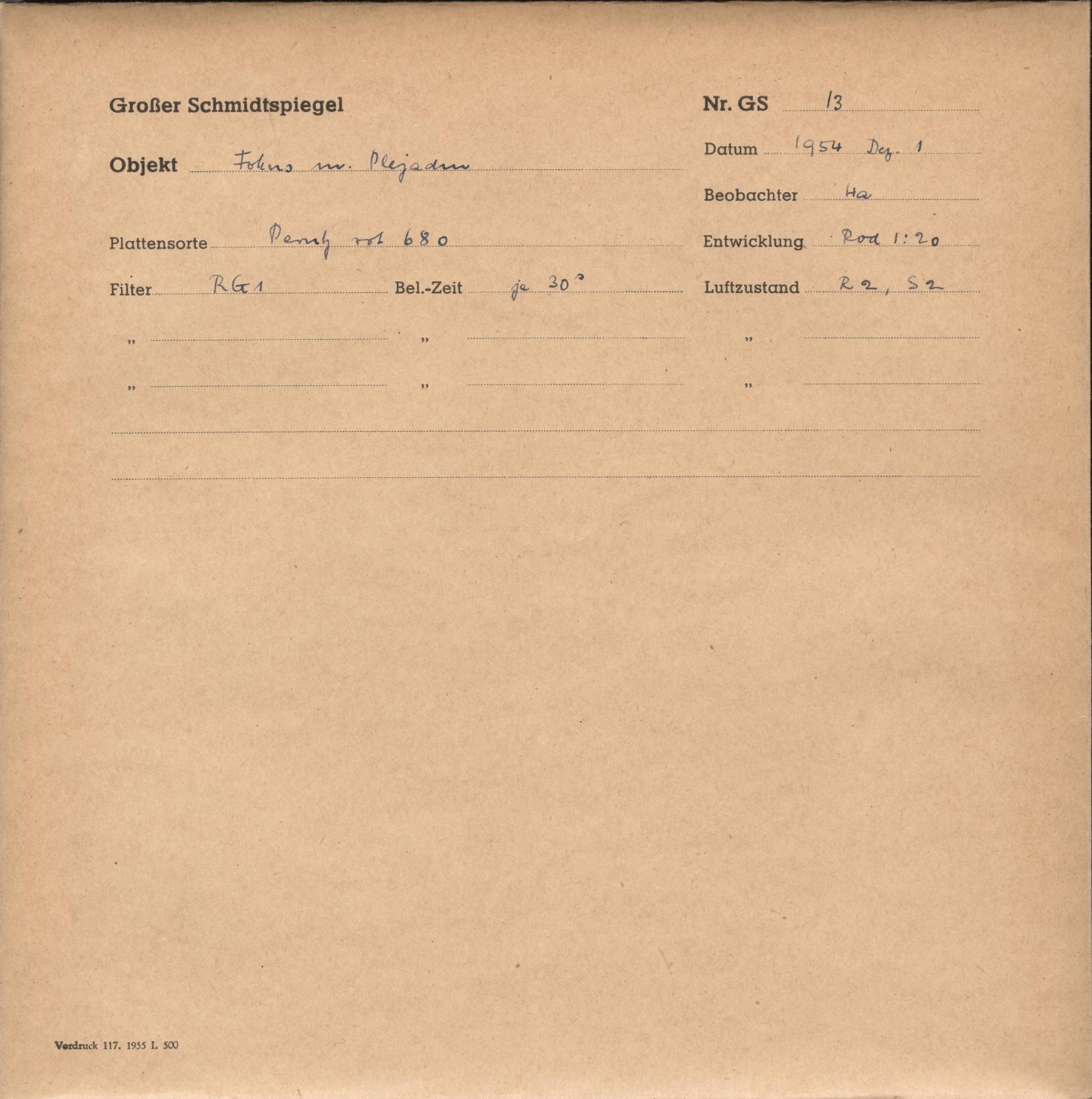 Großer-Schmidt-Spiegel: GS00013 -- Plejaden --