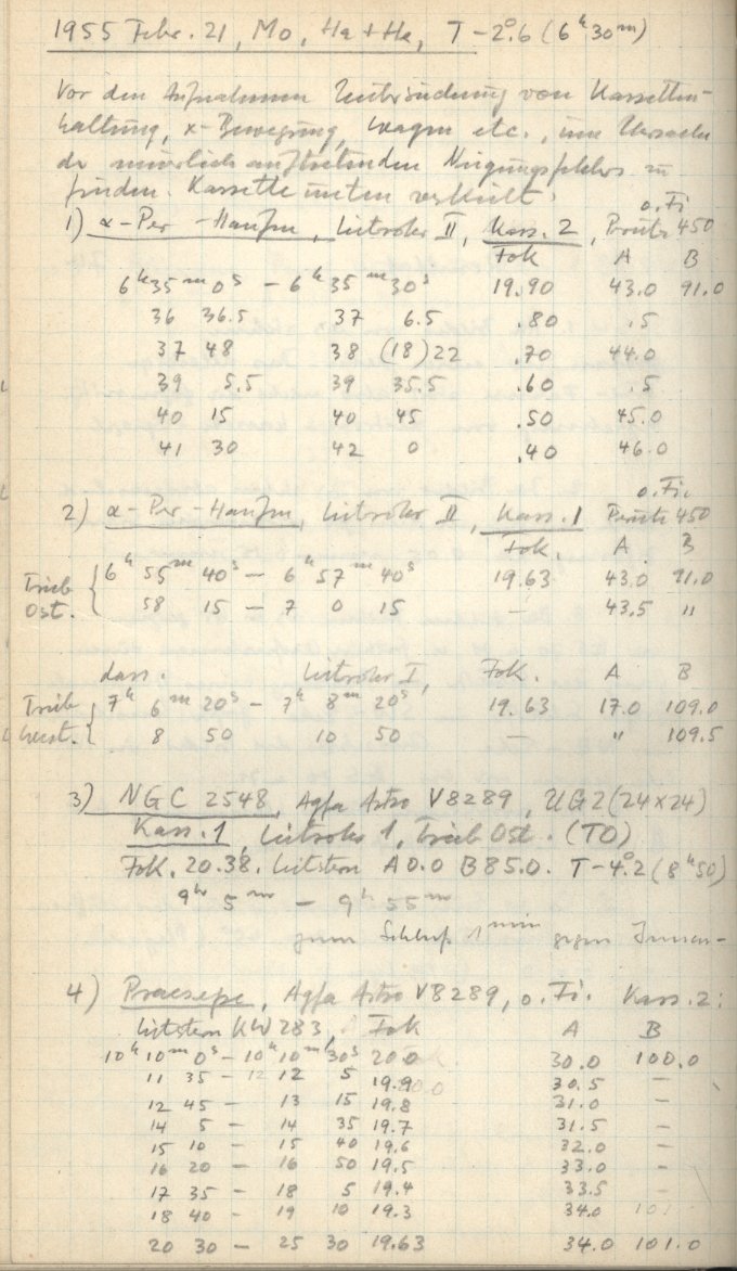 Zum Datum gehörende Seiten des Beobachtungsbuches