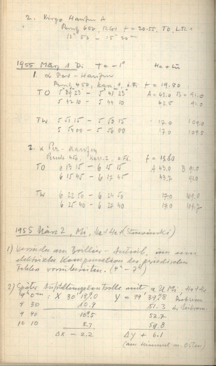 Zum Datum gehörende Seiten des Beobachtungsbuches