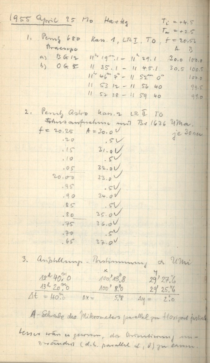 Zum Datum gehörende Seiten des Beobachtungsbuches
