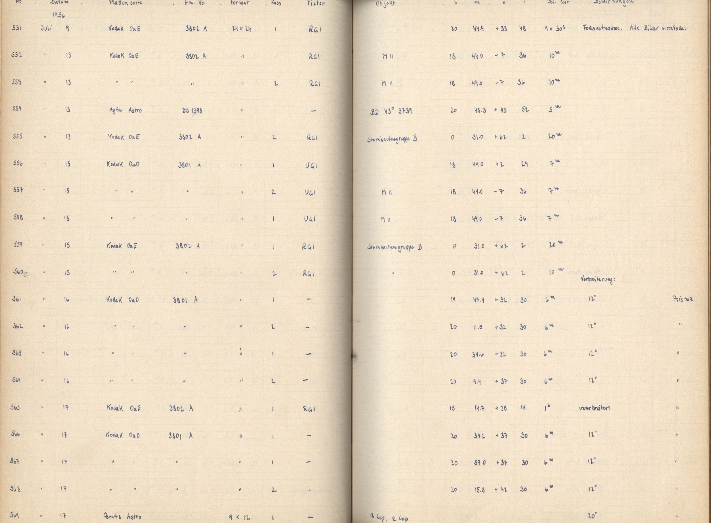Zum Datum gehörende Seiten des Beobachtungsbuches