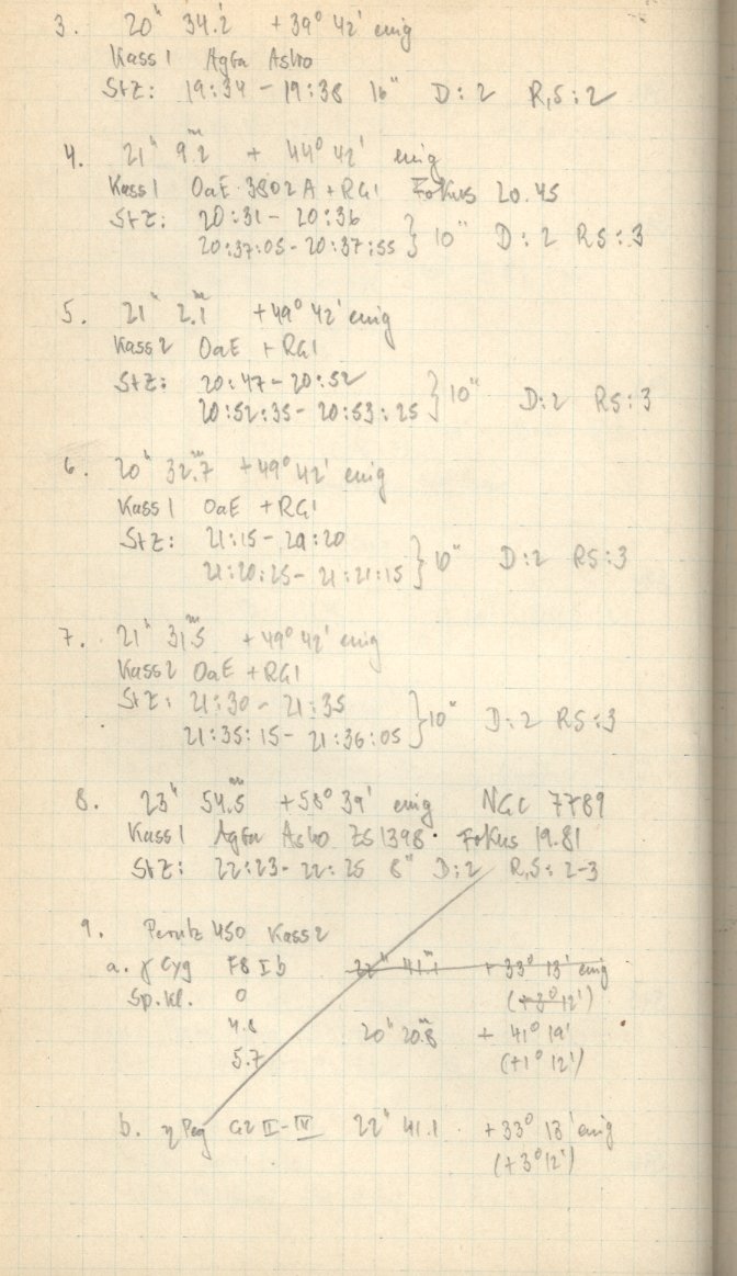 Zum Datum gehörende Seiten des Beobachtungsbuches
