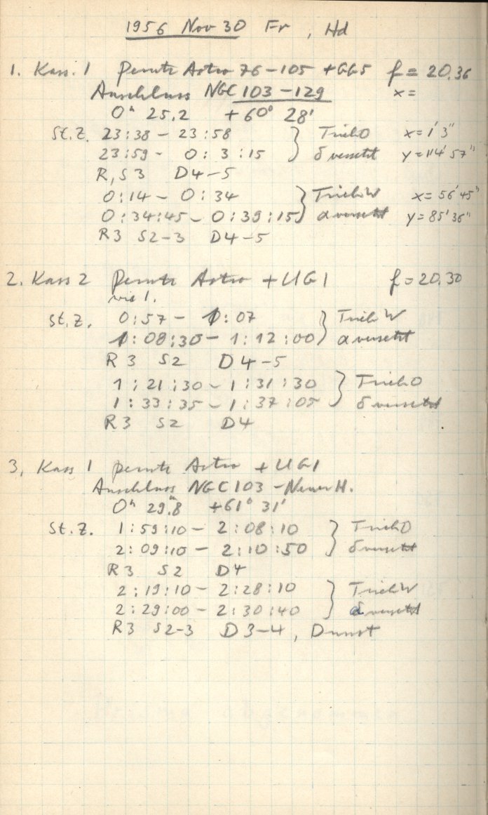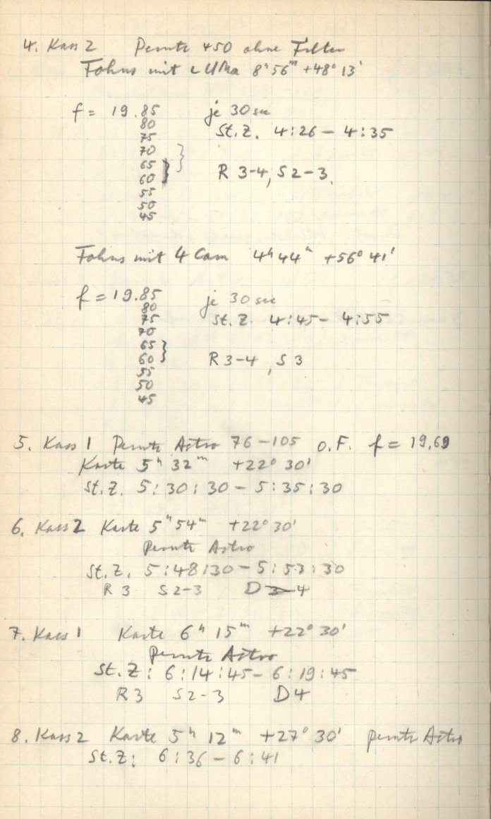Zum Datum gehörende Seiten des Beobachtungsbuches