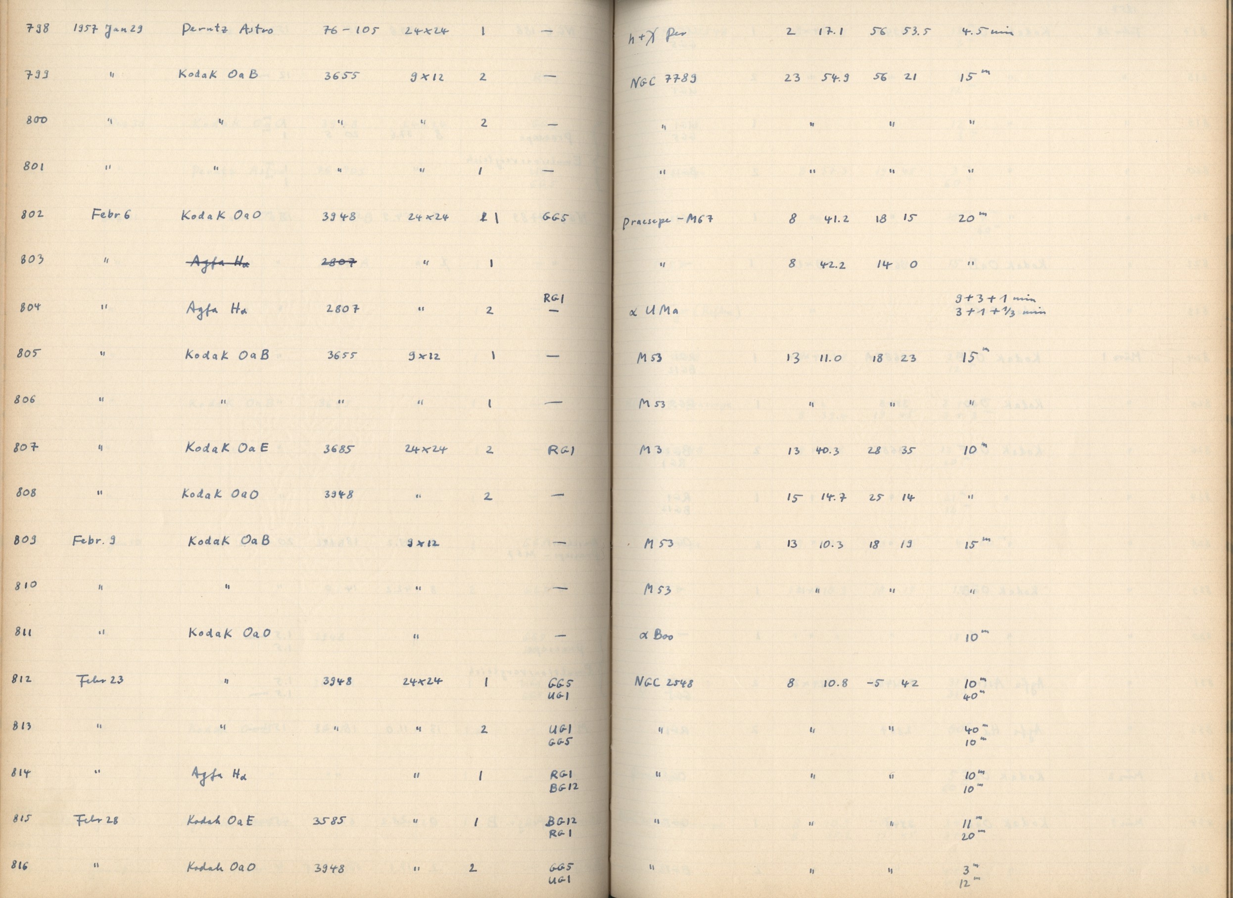Zum Datum gehörende Seiten des Beobachtungsbuches