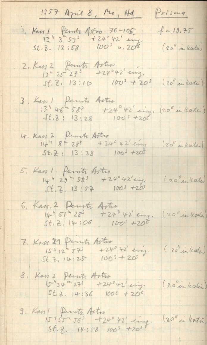 Zum Datum gehörende Seiten des Beobachtungsbuches