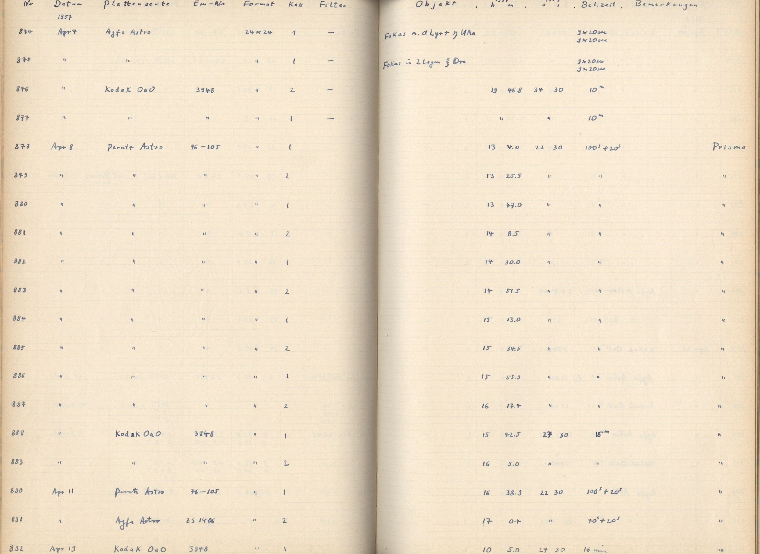 Norden = links, Osten = unten, falls nicht auf der Fotoplatte anders beschriftet