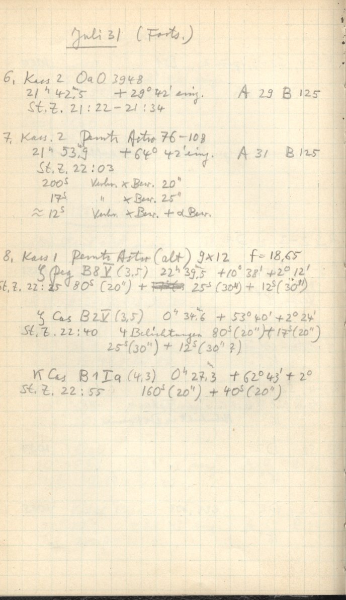 Zum Datum gehörende Seiten des Beobachtungsbuches