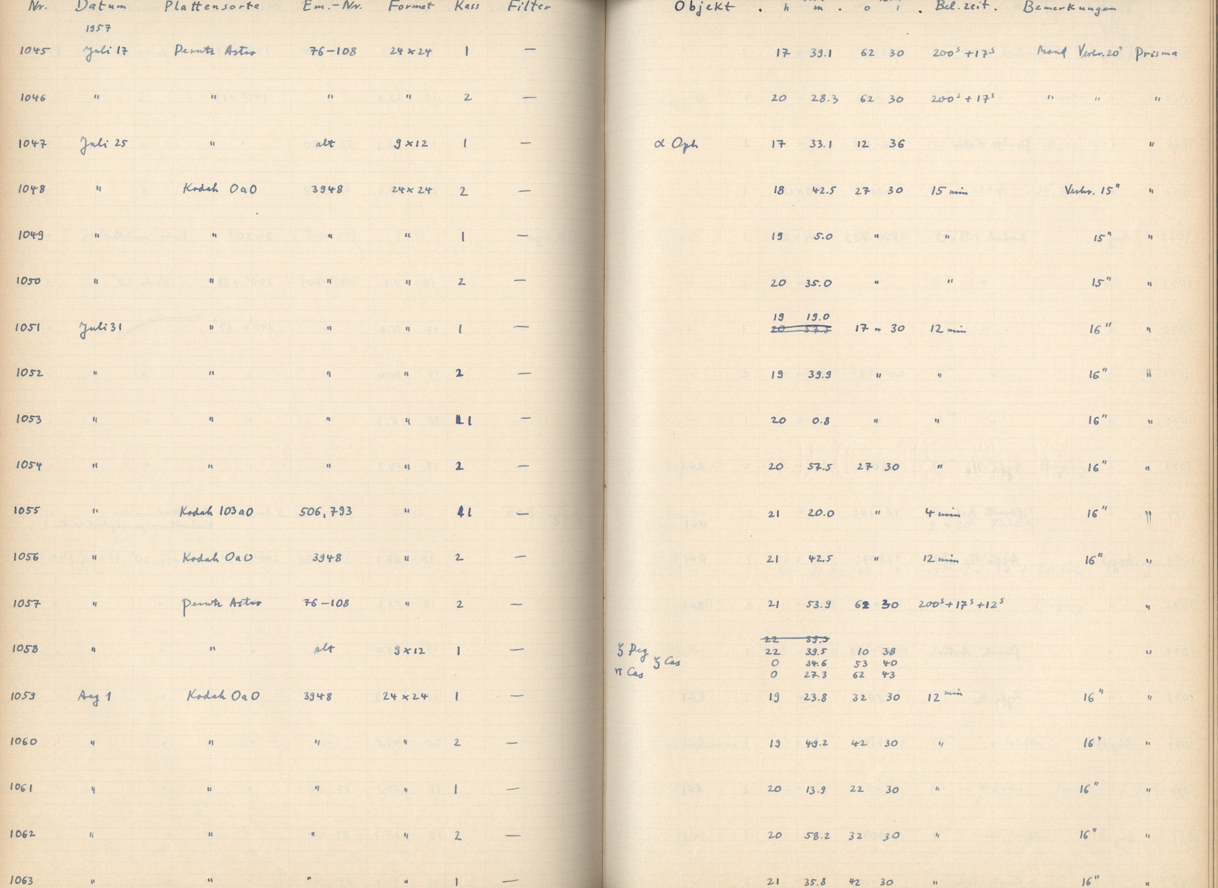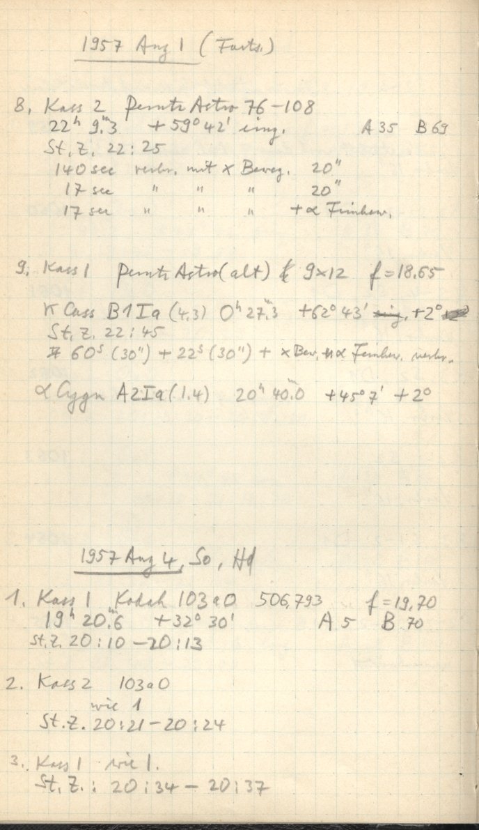 Zum Datum gehörende Seiten des Beobachtungsbuches