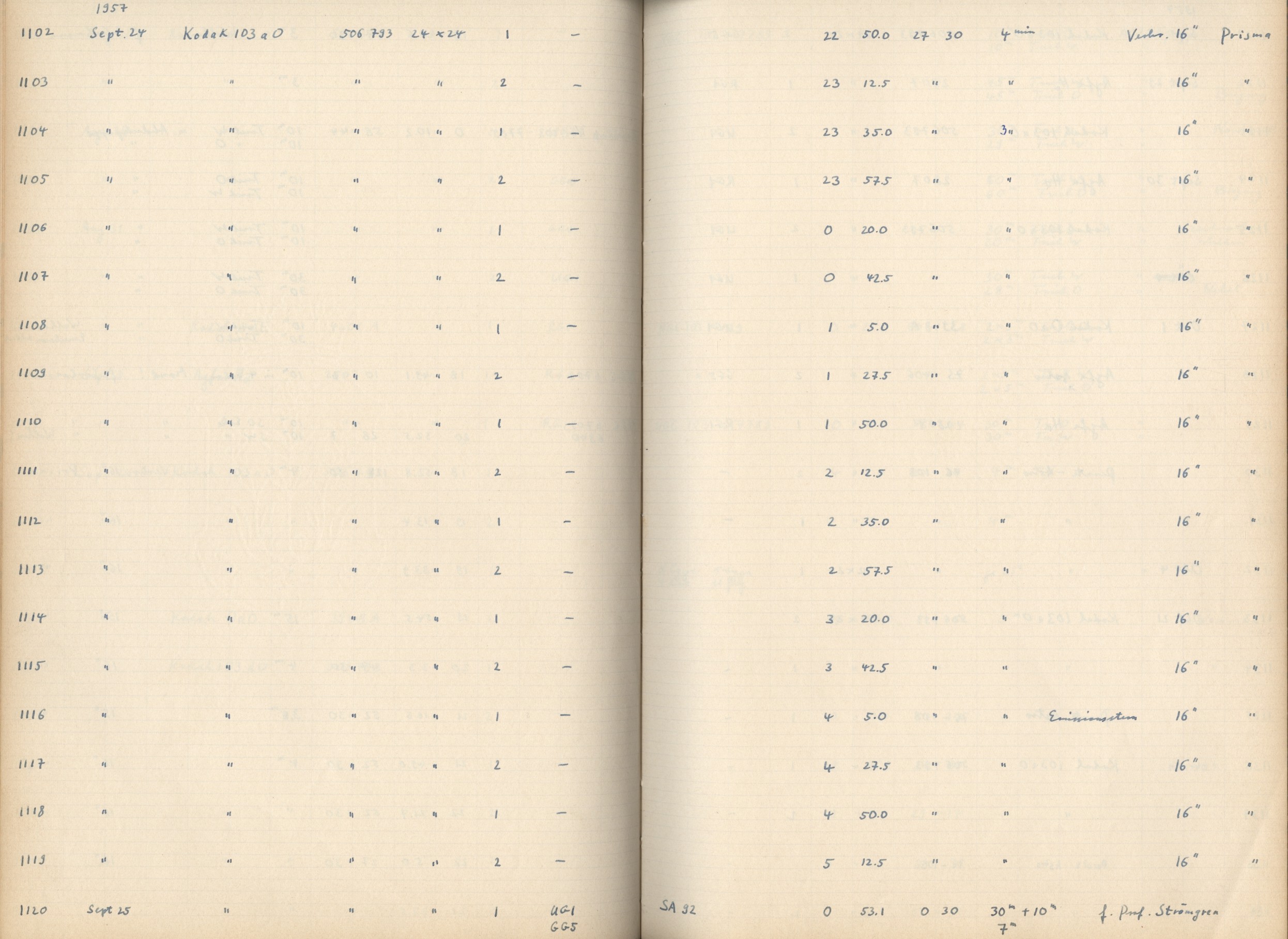 Zum Datum gehörende Seiten des Beobachtungsbuches