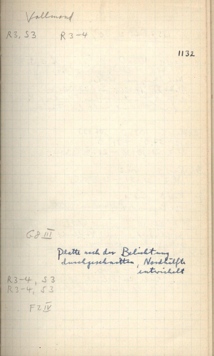 Norden = links, Osten = unten, falls nicht auf der Fotoplatte anders beschriftet