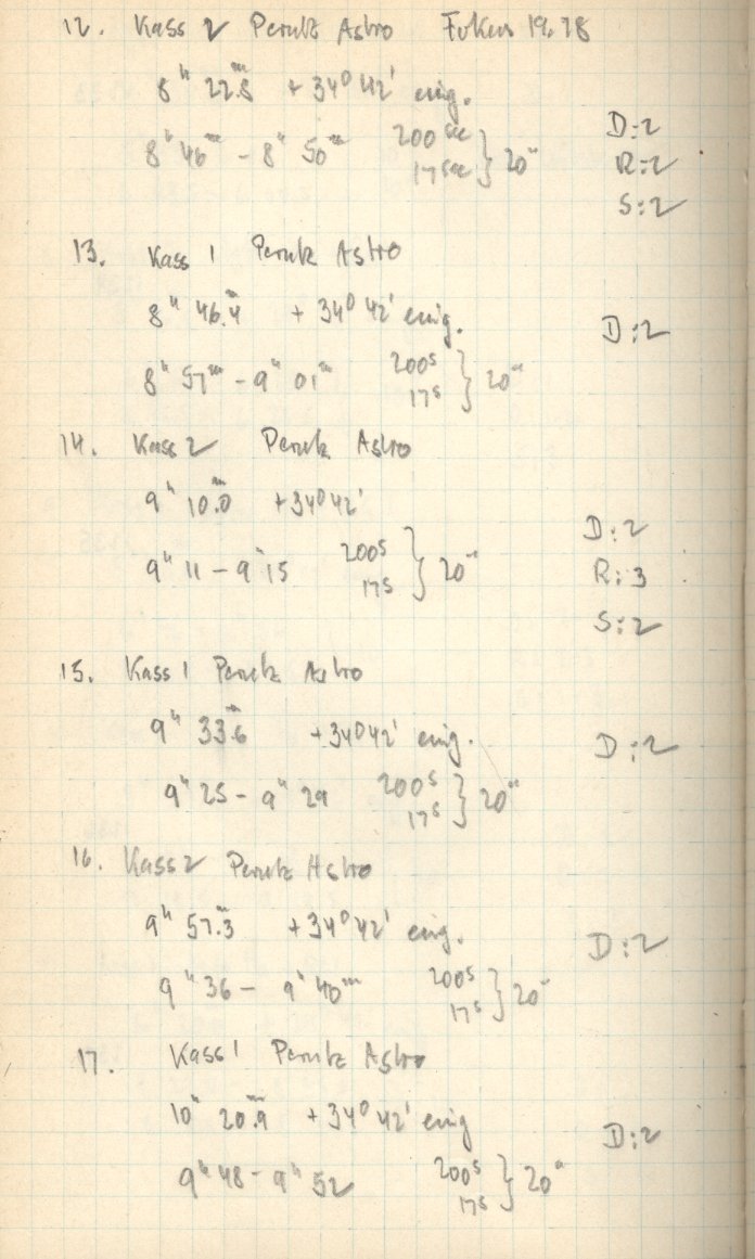 Zum Datum gehörende Seiten des Beobachtungsbuches