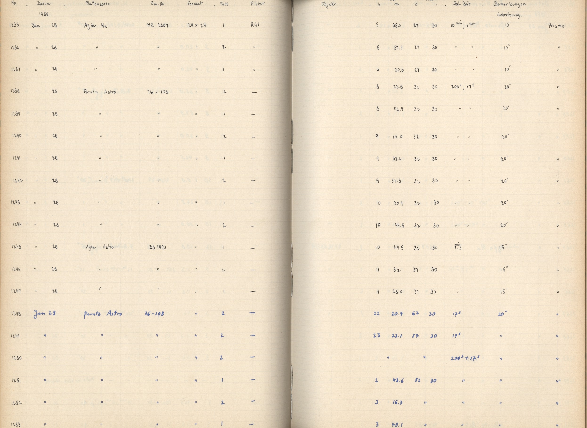 Norden = links, Osten = unten, falls nicht auf der Fotoplatte anders beschriftet