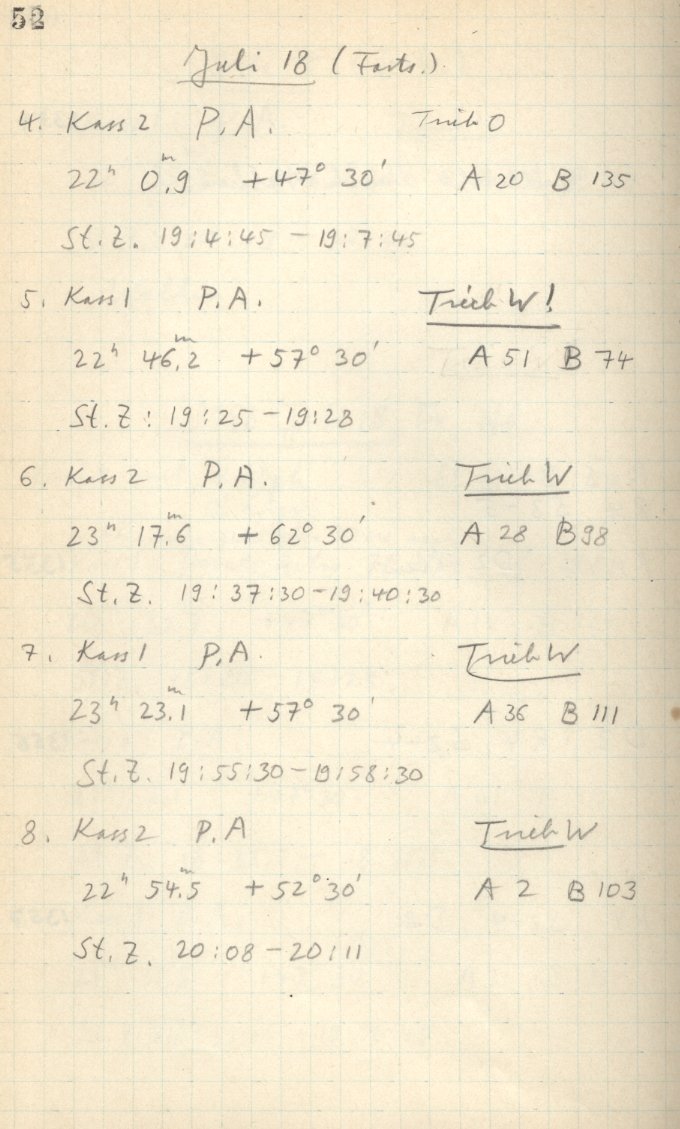 Zum Datum gehörende Seiten des Beobachtungsbuches