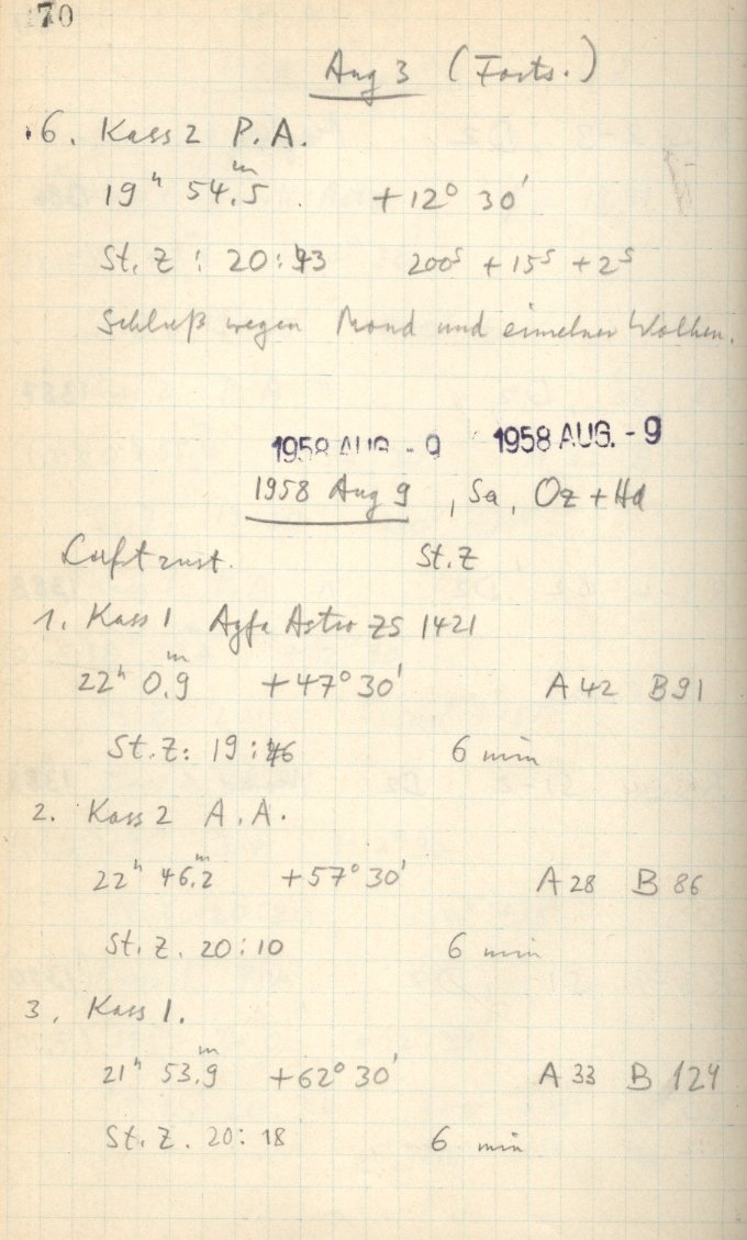 Zum Datum gehörende Seiten des Beobachtungsbuches