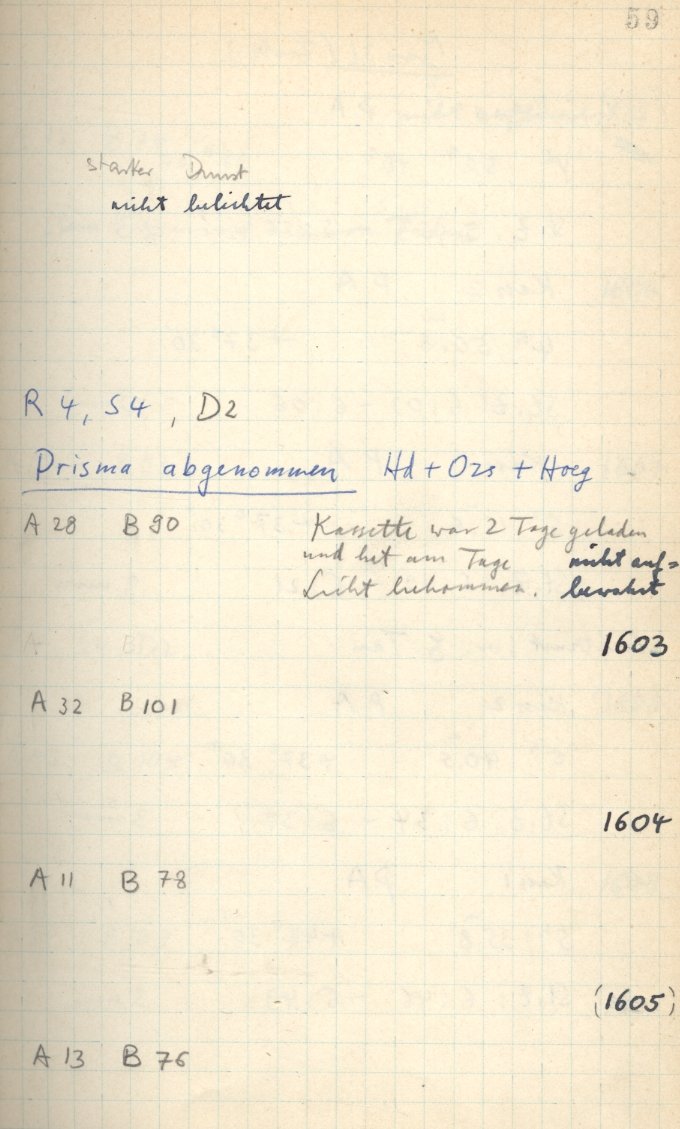 Zum Datum gehörende Seiten des Beobachtungsbuches