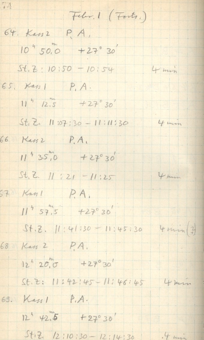Zum Datum gehörende Seiten des Beobachtungsbuches