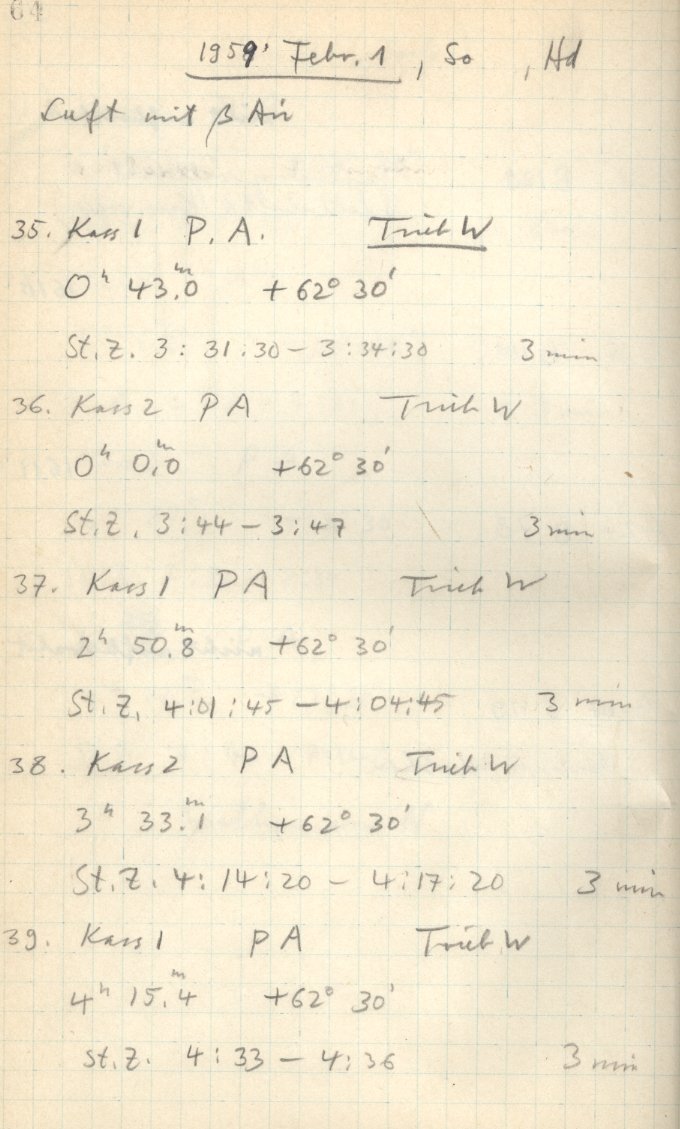 Zum Datum gehörende Seiten des Beobachtungsbuches