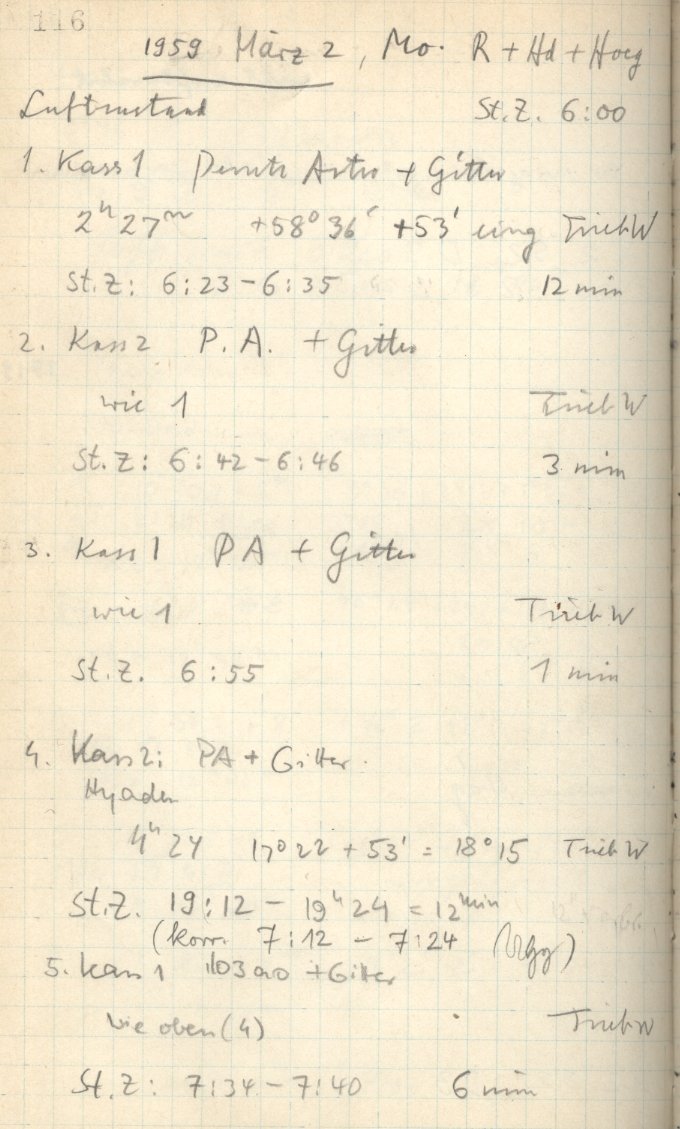 Zum Datum gehörende Seiten des Beobachtungsbuches