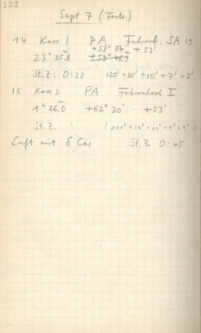 Zum Datum gehörende Seiten des Beobachtungsbuches
