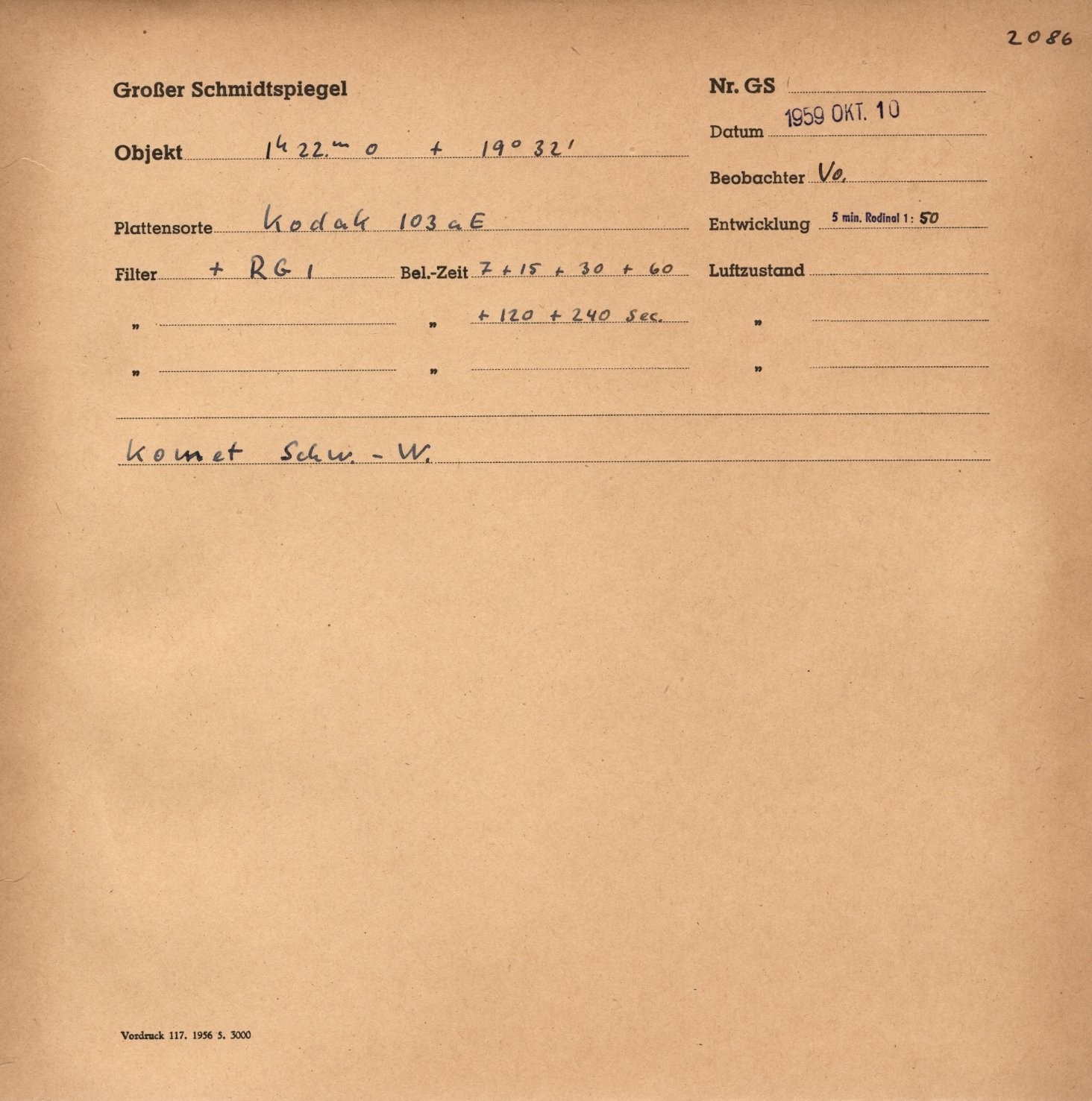 Großer-Schmidt-Spiegel: GS02086 -- Komet Sn-Wa I -- 01:22.0 +19:32.0