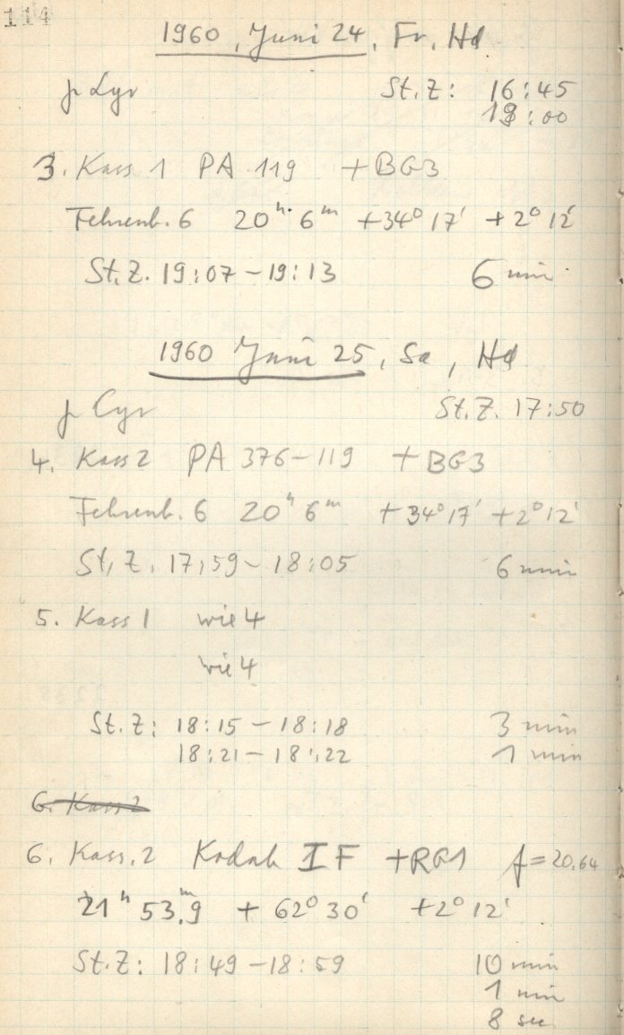 Zum Datum gehörende Seiten des Beobachtungsbuches