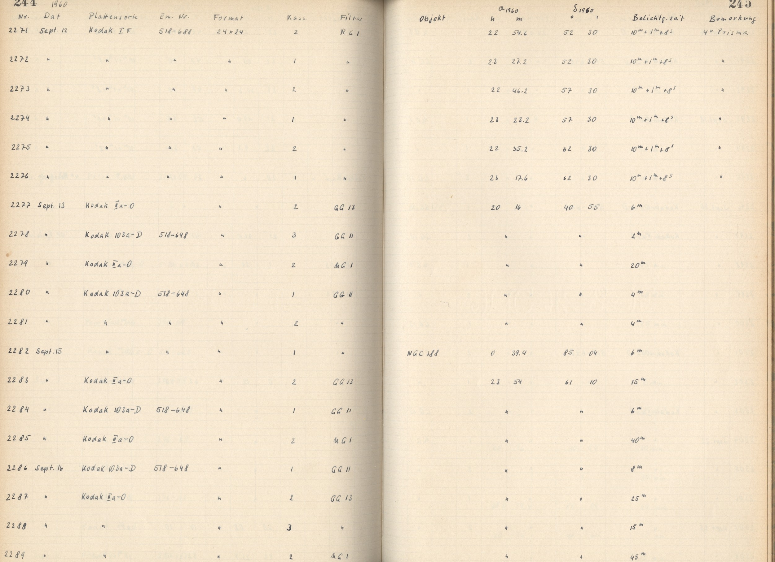 Norden = links, Osten = unten, falls nicht auf der Fotoplatte anders beschriftet