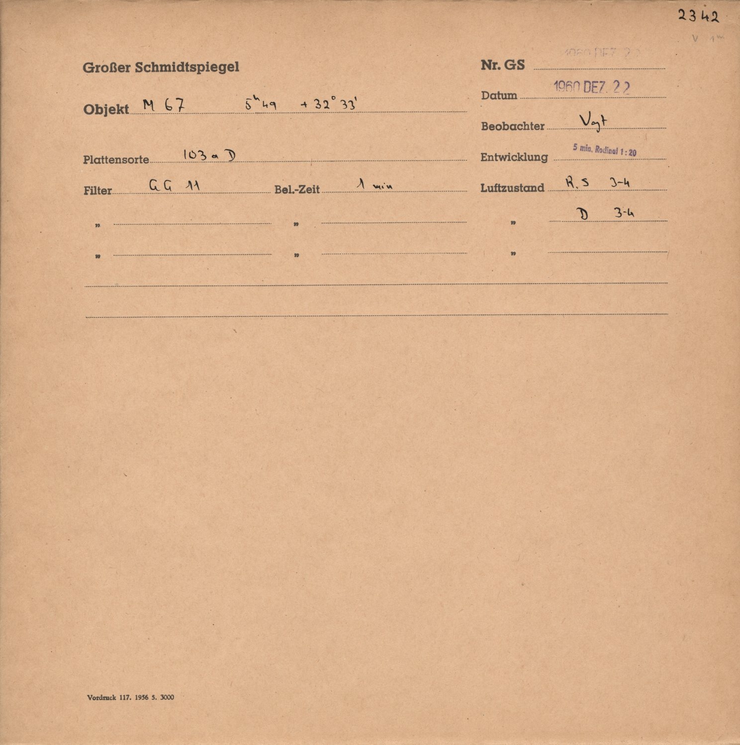 Großer-Schmidt-Spiegel: GS02342 -- M 67 -- 05:49.0 +32:33.0