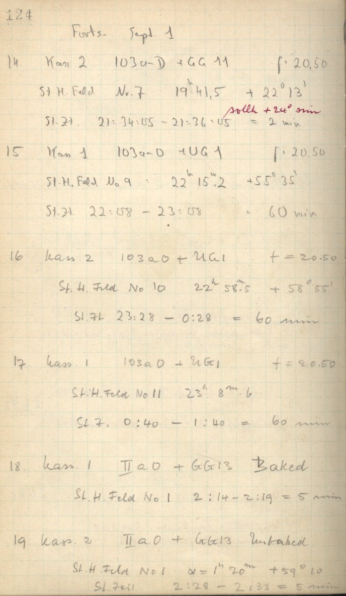Zum Datum gehörende Seiten des Beobachtungsbuches