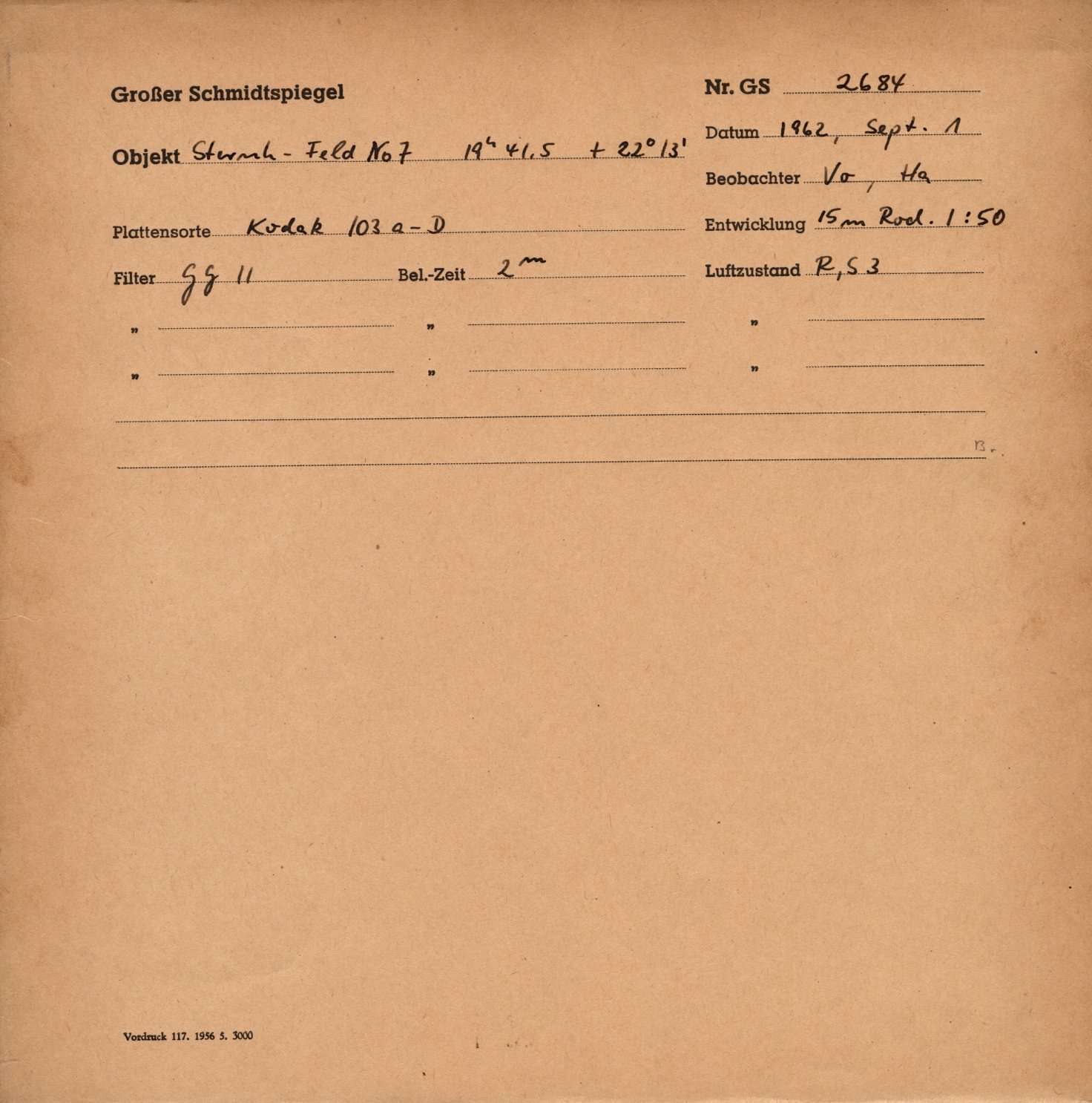 Großer-Schmidt-Spiegel: GS02684 -- Sternhaufenfeld Nr.7 -- 19:41.5 +22:13.0