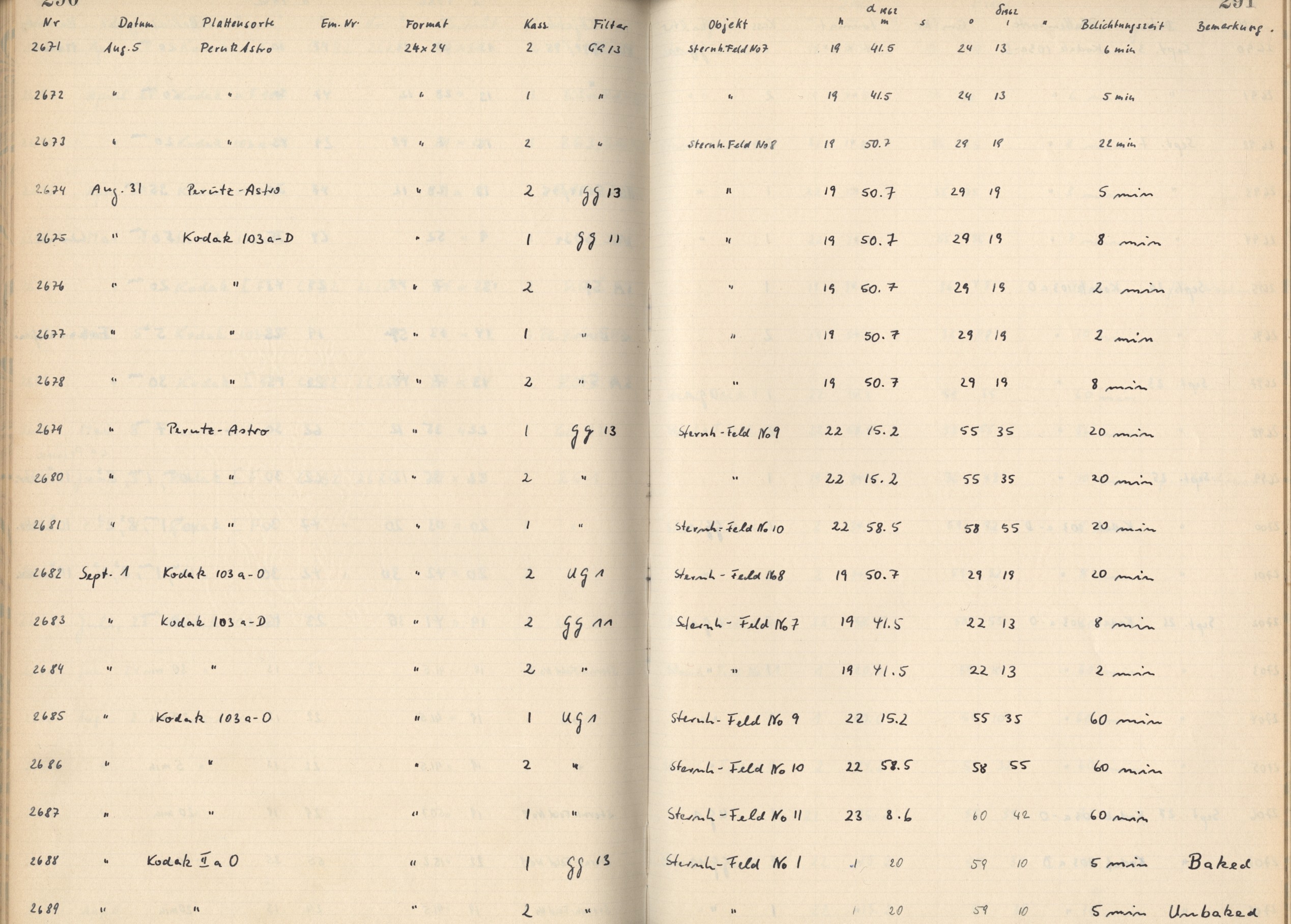 Norden = oben, Osten = links, falls nicht auf der Fotoplatte anders beschriftet
