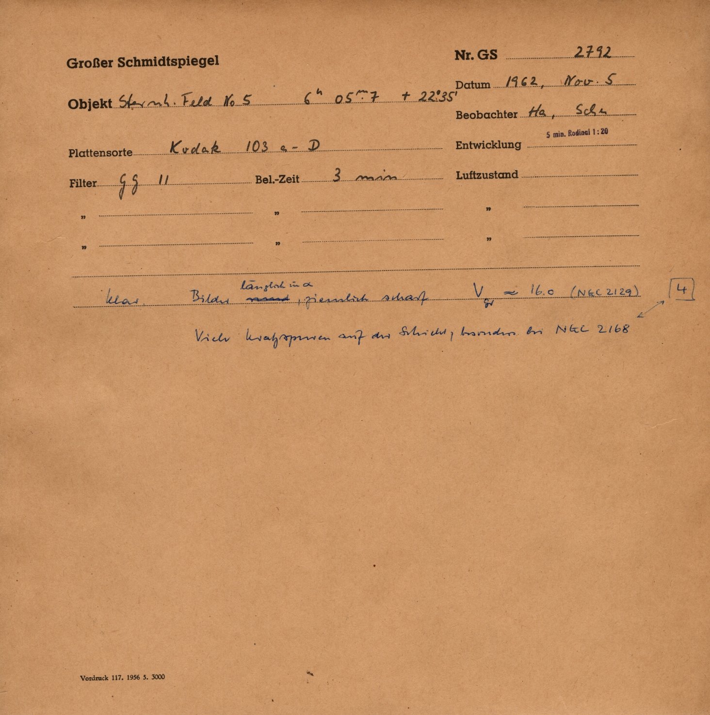Großer-Schmidt-Spiegel: GS02792 -- Sternhaufenfeld Nr.5 -- 06:05.7 +22:35.0