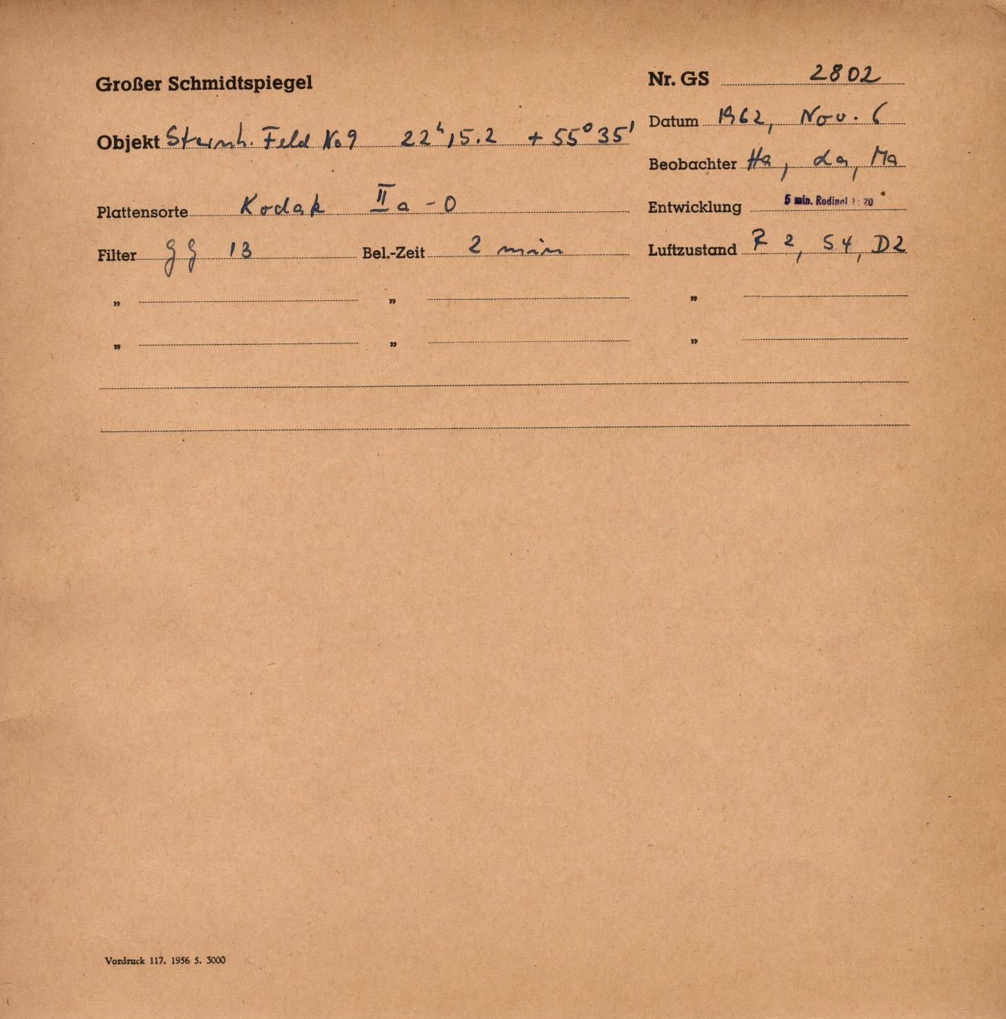 Großer-Schmidt-Spiegel: GS02802 -- Sternhaufenfeld Nr.9 -- 22:15.2 +55:35.0