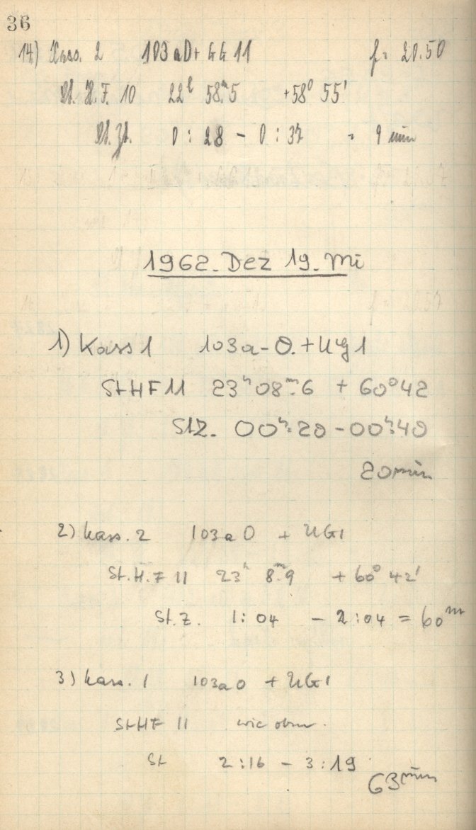 Zum Datum gehörende Seiten des Beobachtungsbuches