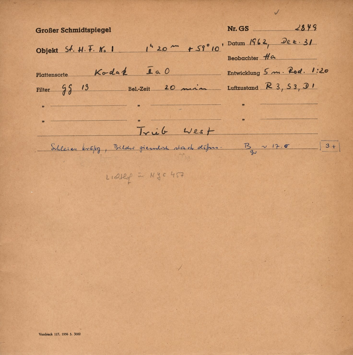 Großer-Schmidt-Spiegel: GS02849 -- Sternhaufenfeld Nr.1 -- 01:20.0 +59:10.0